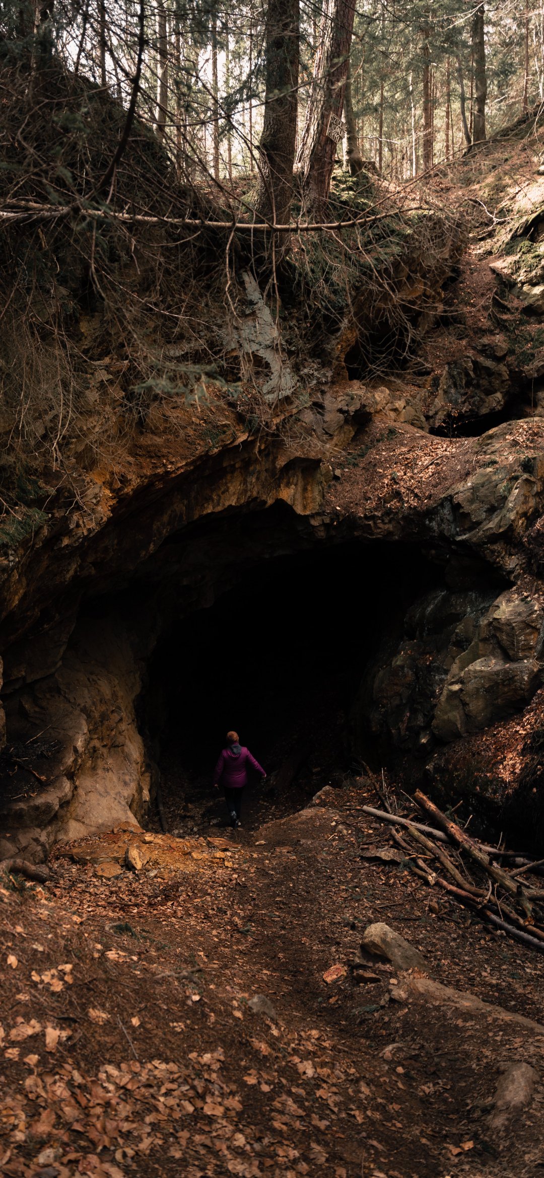 Wallpaper: in the woods, cave - 1080x2340