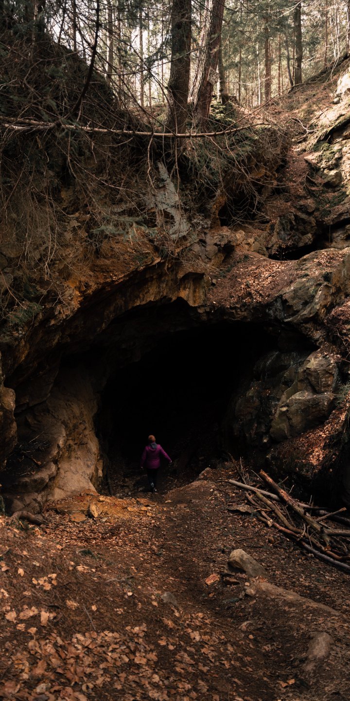 Wallpaper: in the woods, cave - 720x1440