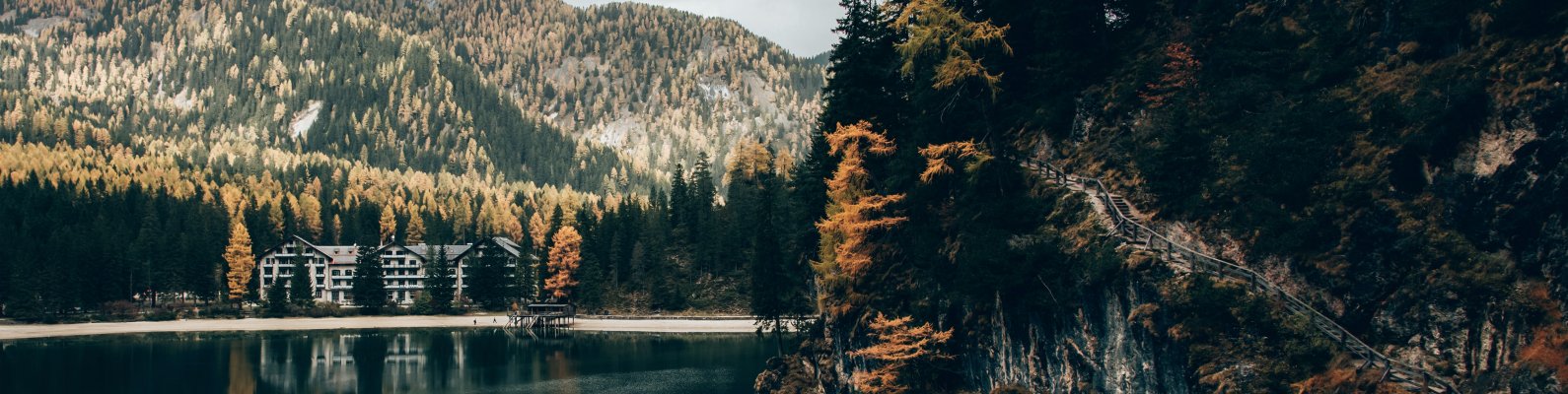 Wallpaper: lake in the mountains, resting place - 1590x400