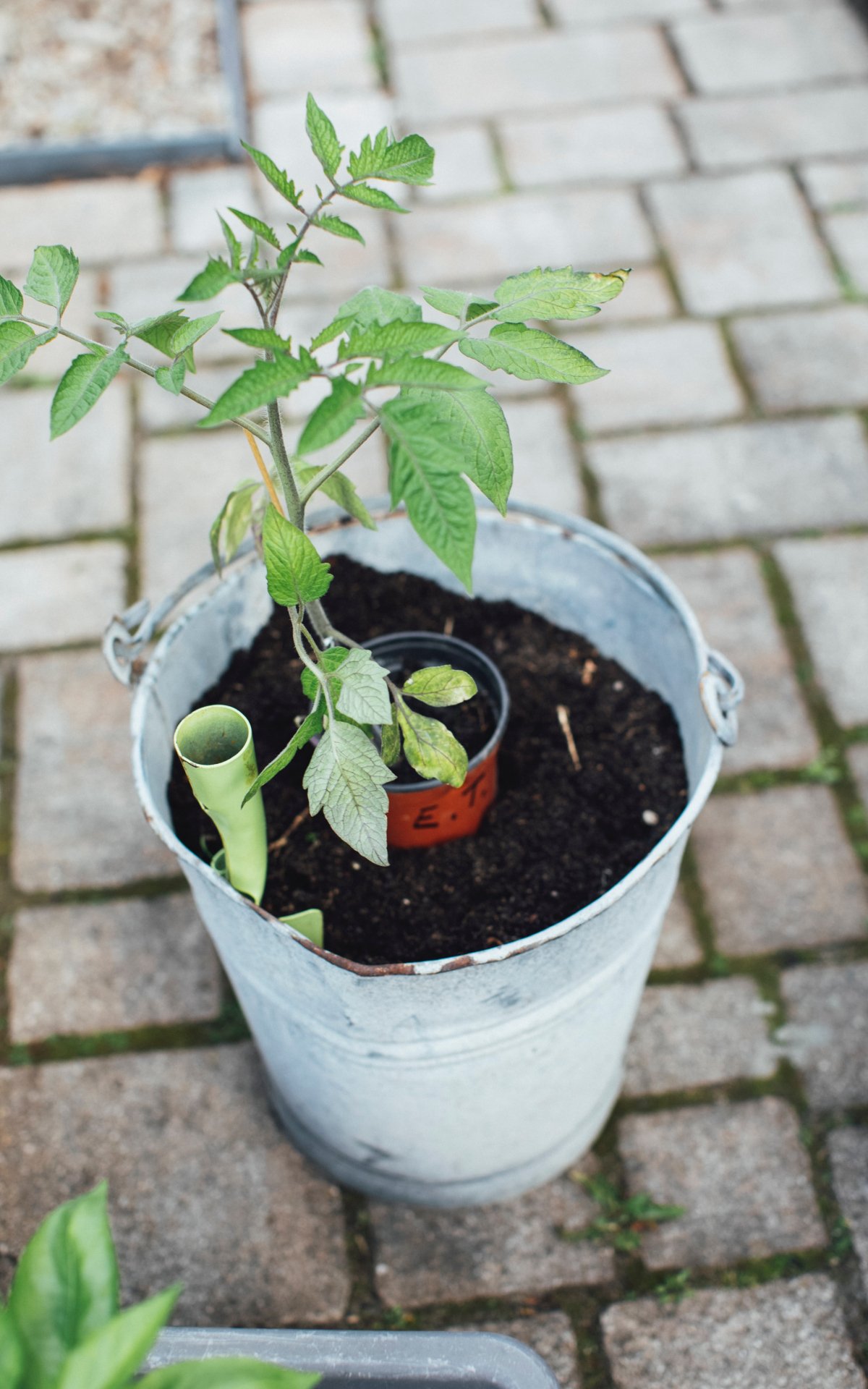 Wallpaper: seedlings, bucket with plant - 1200x1920