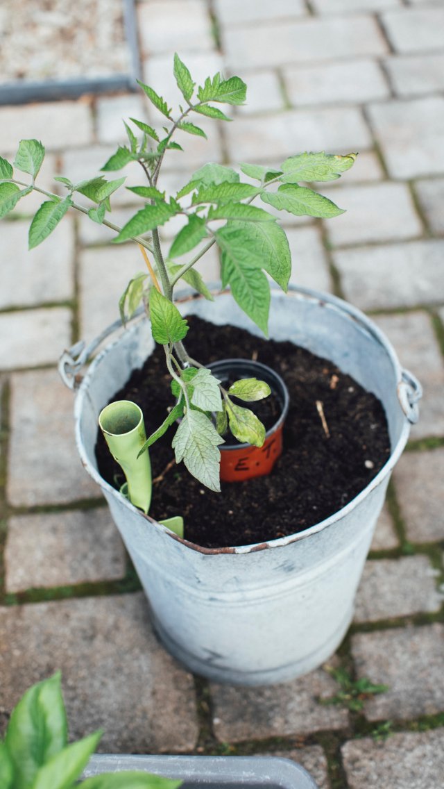 Wallpaper: seedlings, bucket with plant - 640x1136