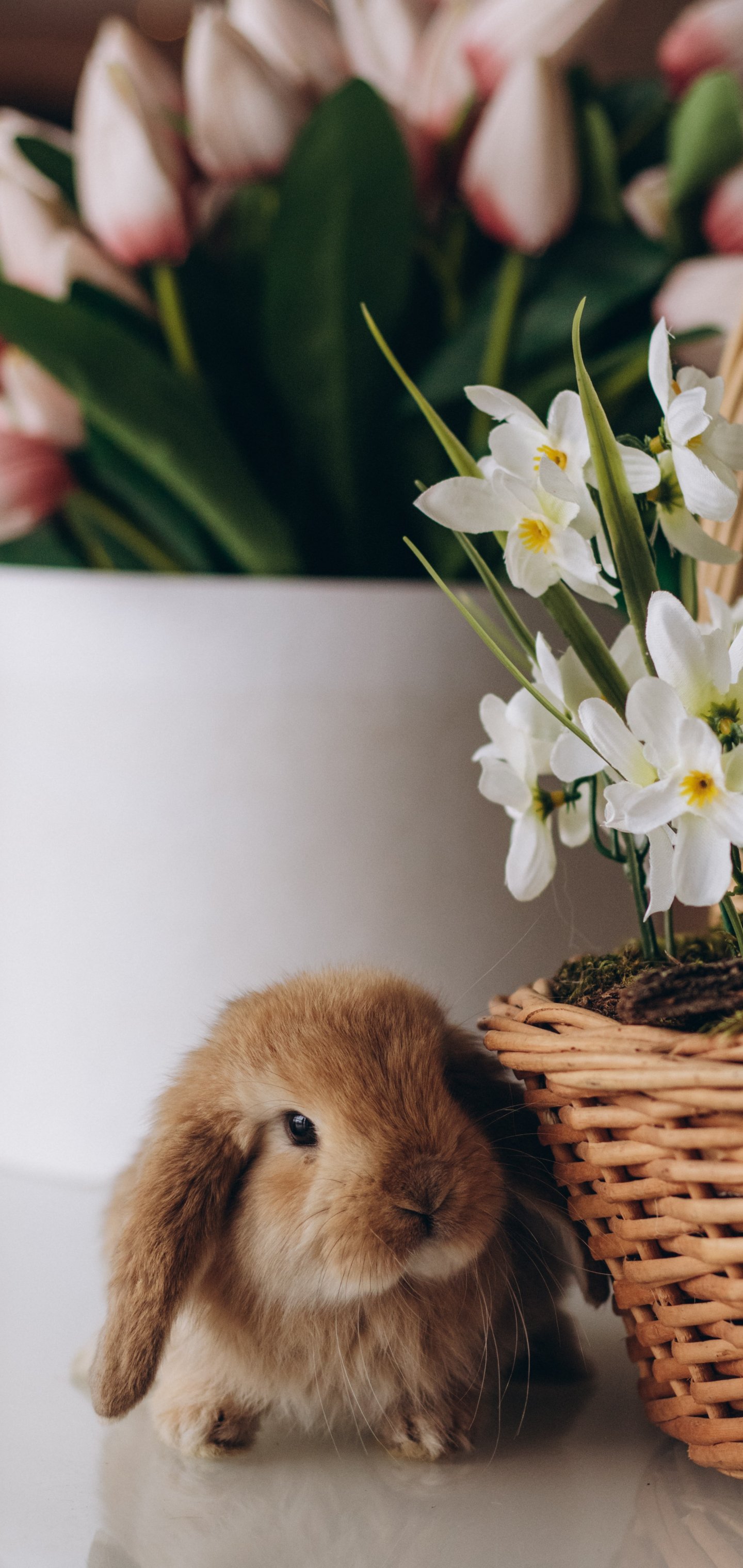 Wallpaper: rabbit, flowers - 1440x3040