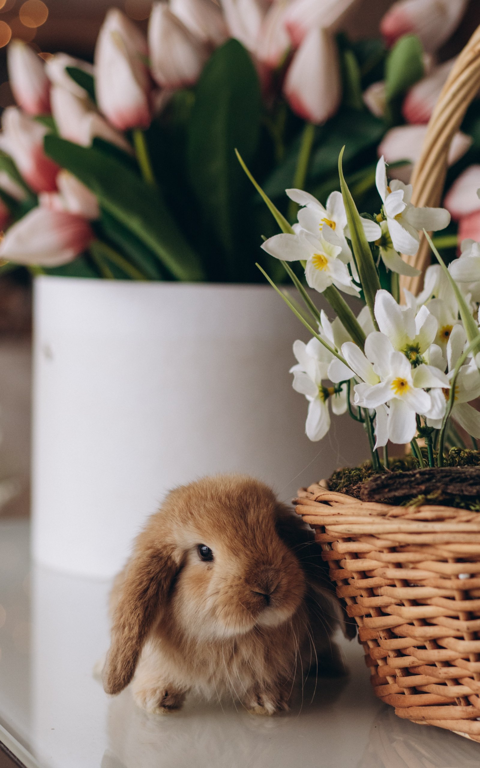 Wallpaper: rabbit, flowers - 1600x2560
