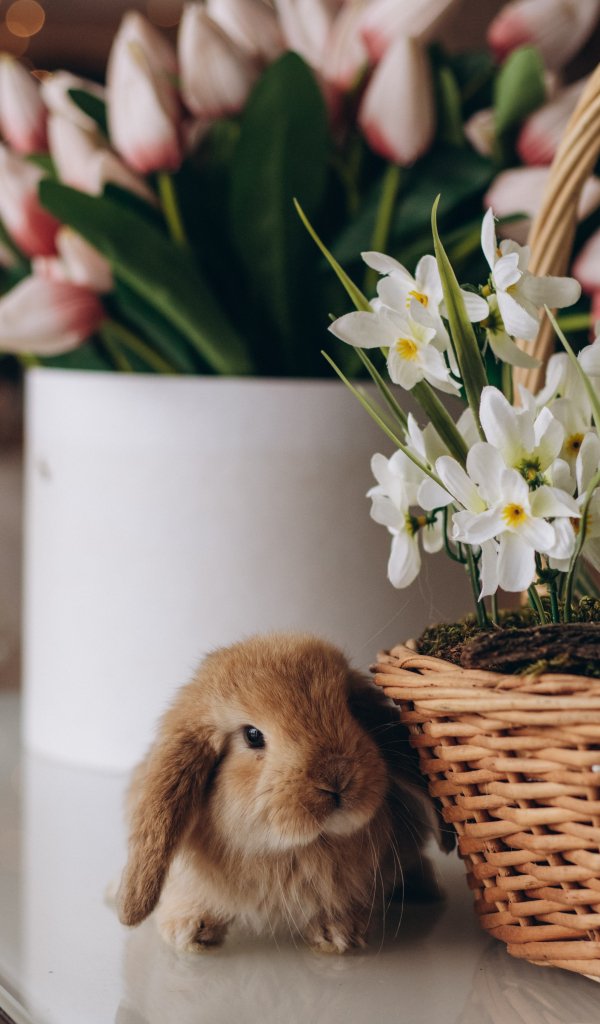 Wallpaper: rabbit, flowers - 600x1024