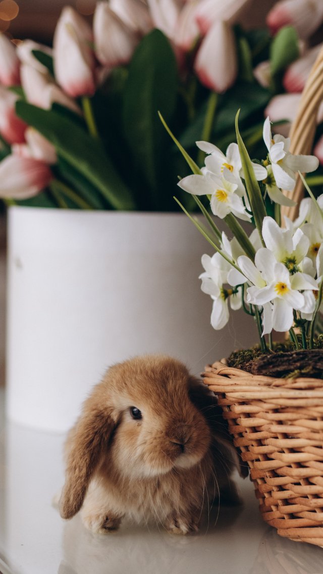 Wallpaper: rabbit, flowers - 640x1136