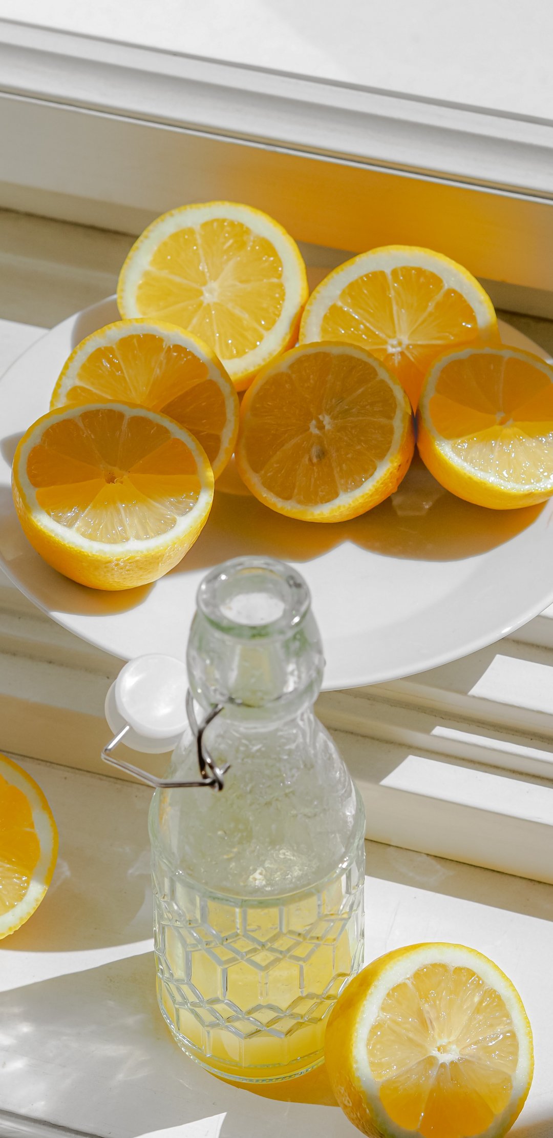Wallpaper: bottle, lemons - 1080x2220