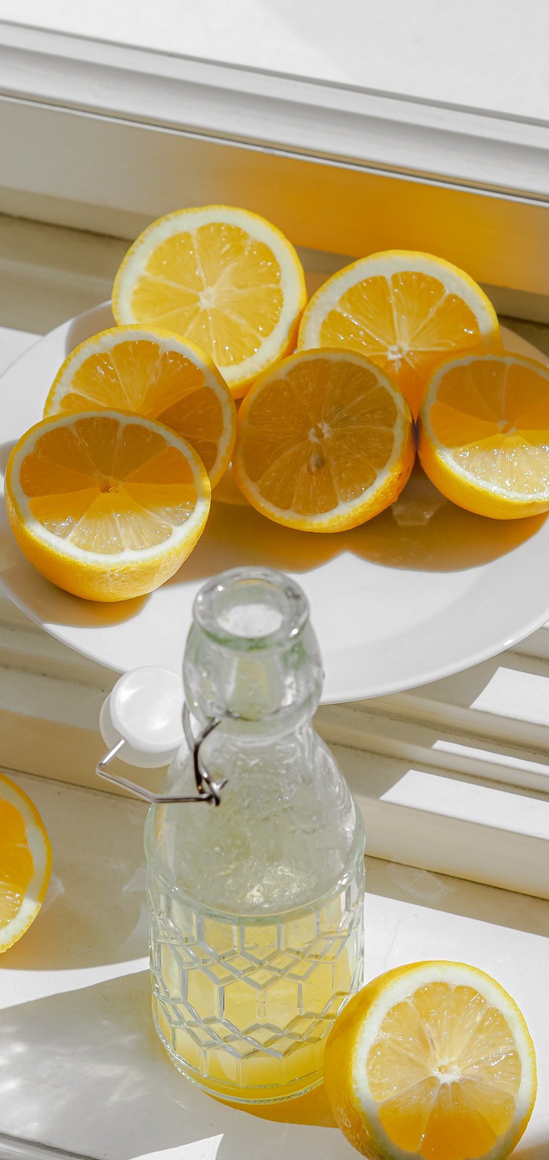 Wallpaper: bottle, lemons - 1080x2280