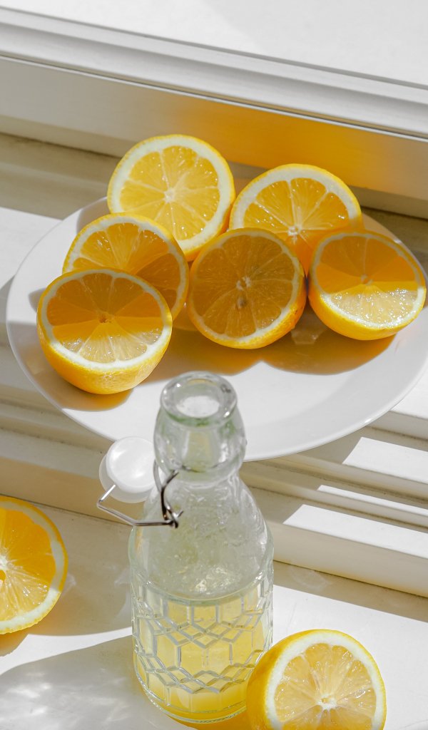 Wallpaper: bottle, lemons - 600x1024
