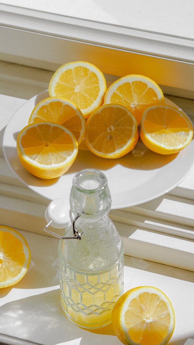 Wallpaper: bottle, lemons - 640x1136