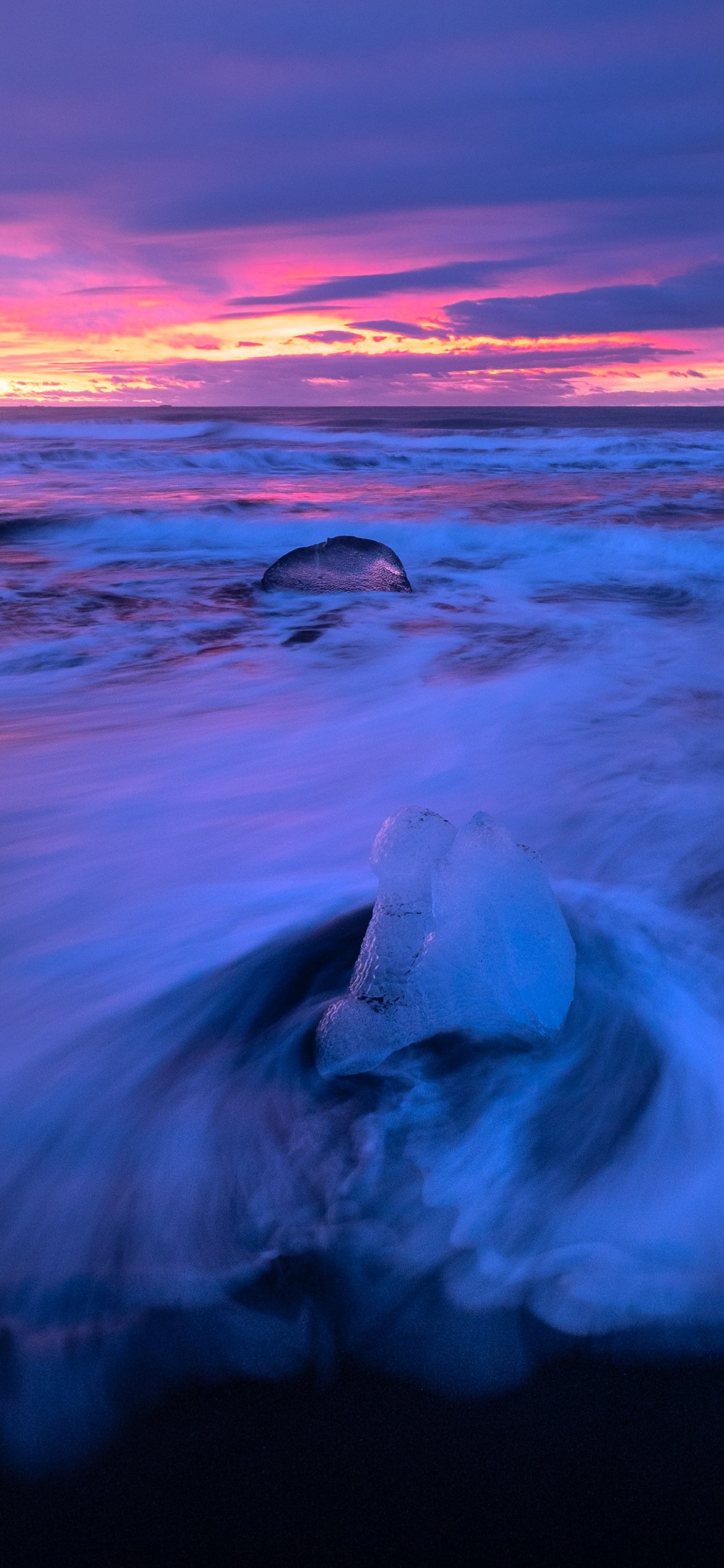 Wallpaper: sea, waves, sunset - 1170x2532