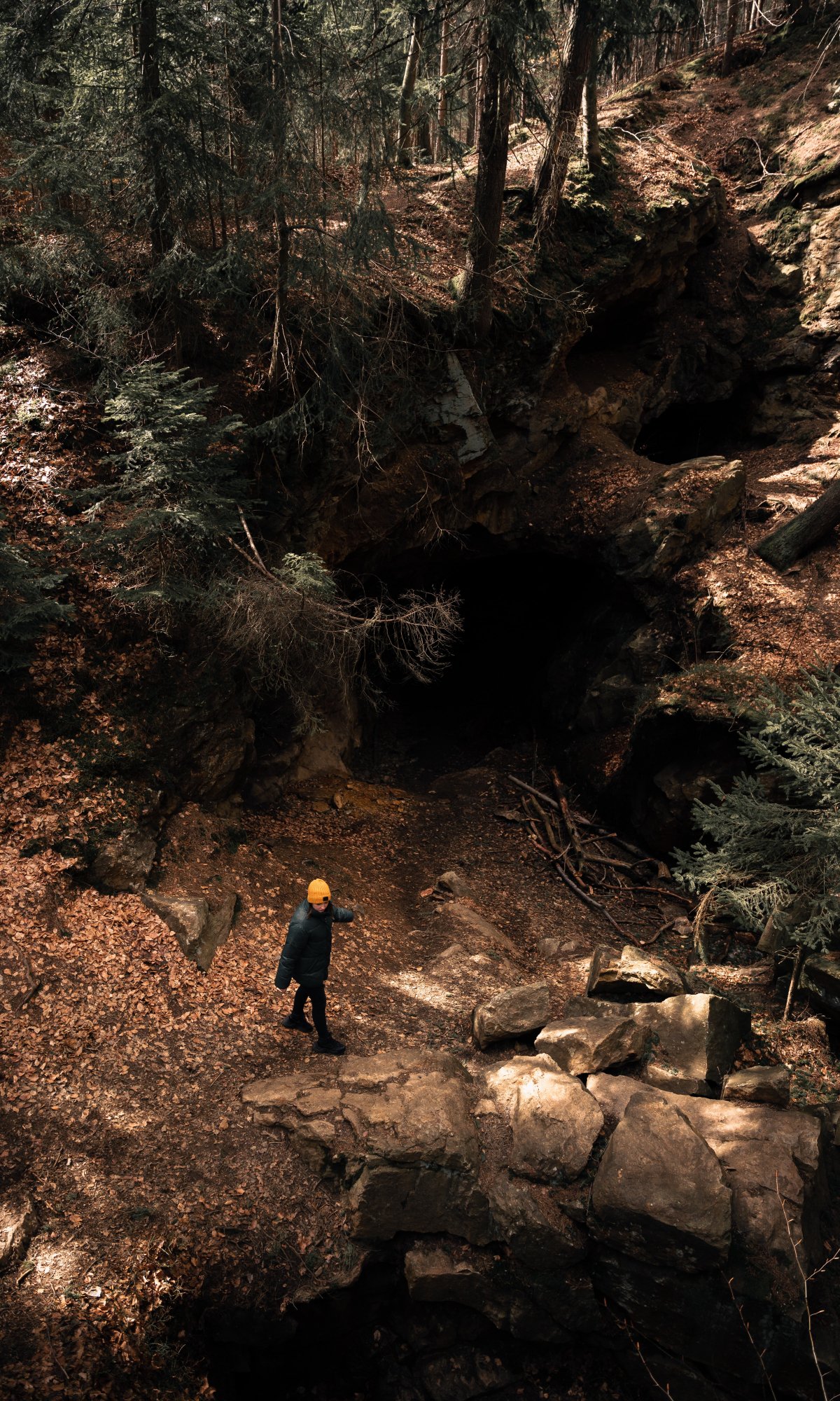 in the woods, cave