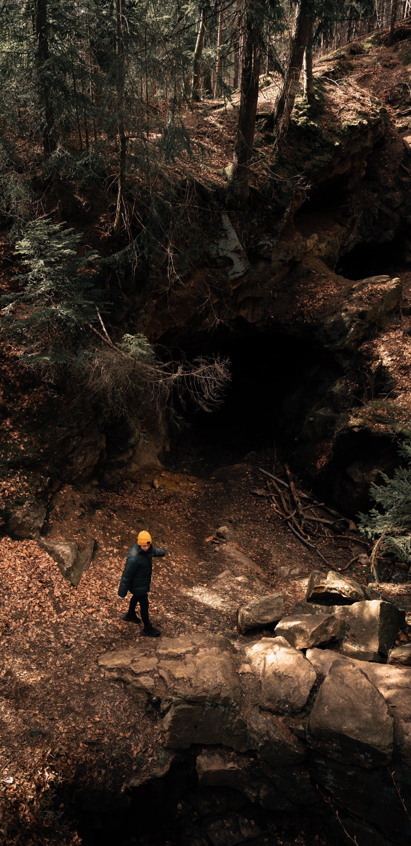 Wallpaper: in the woods, holes in the ground - 1440x2960