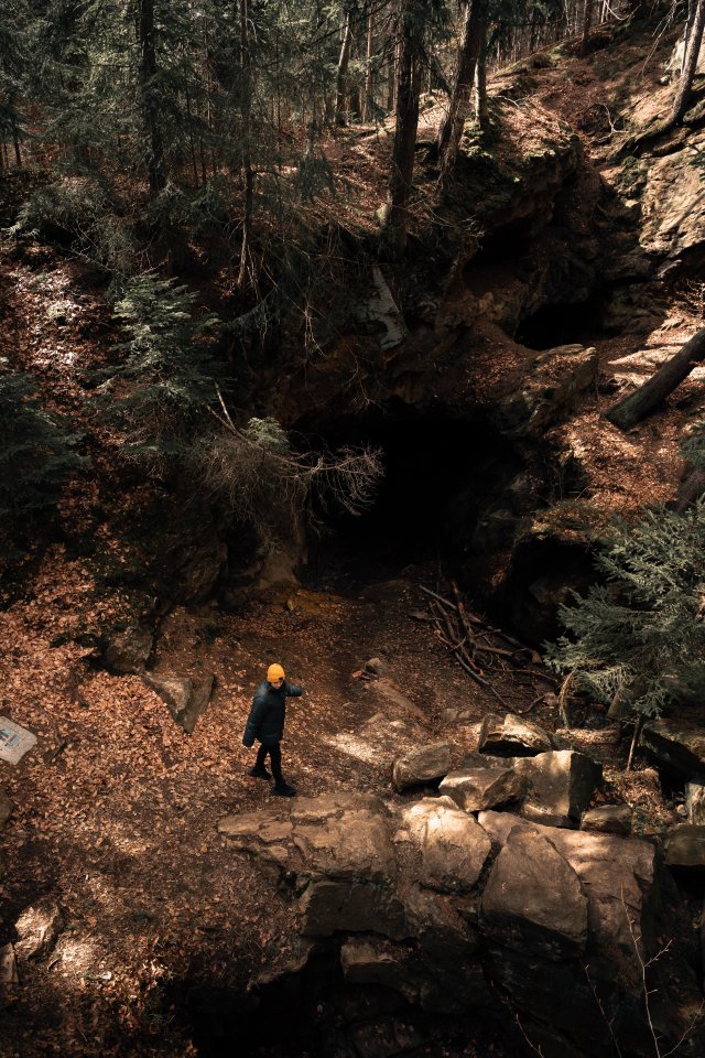 in the woods, cave