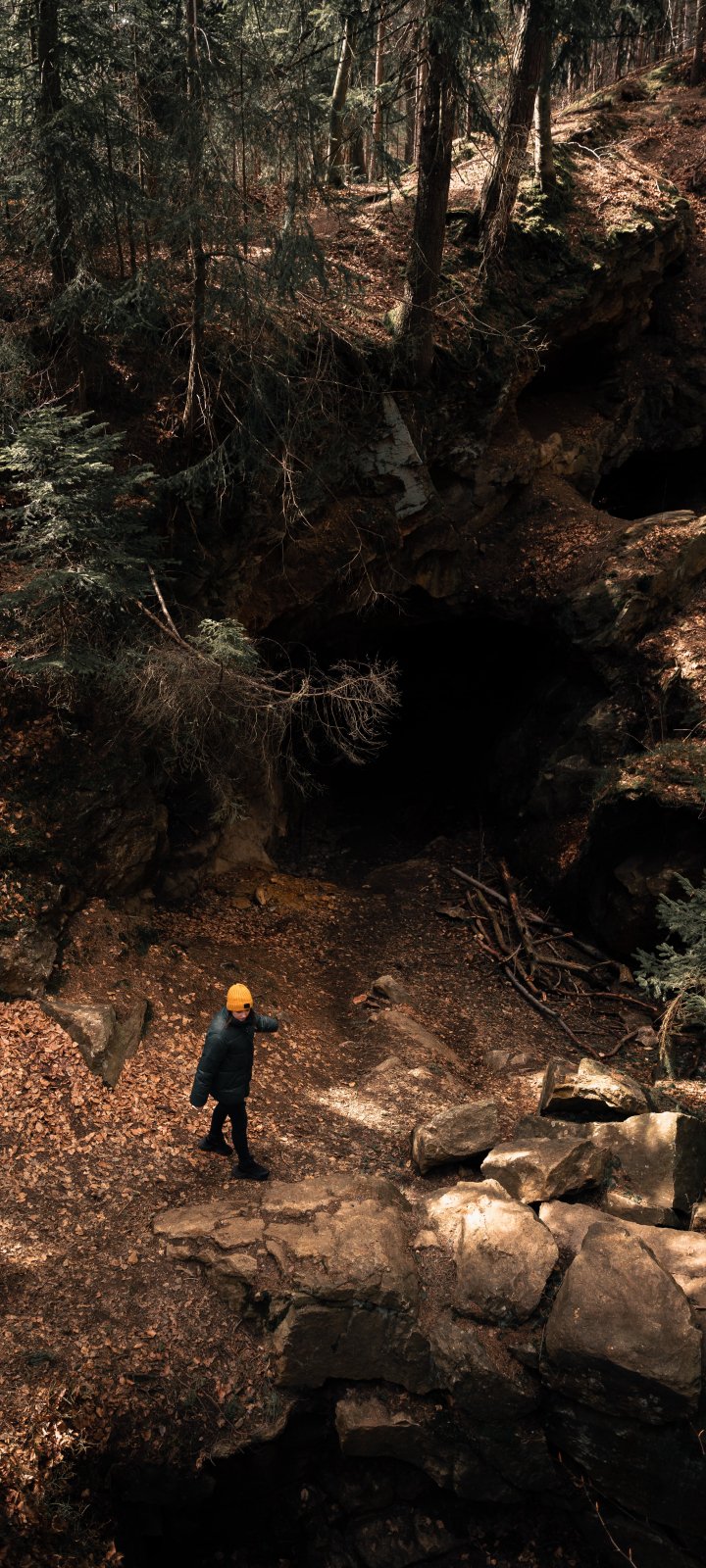 in the woods, cave Wallpaper 720x1600