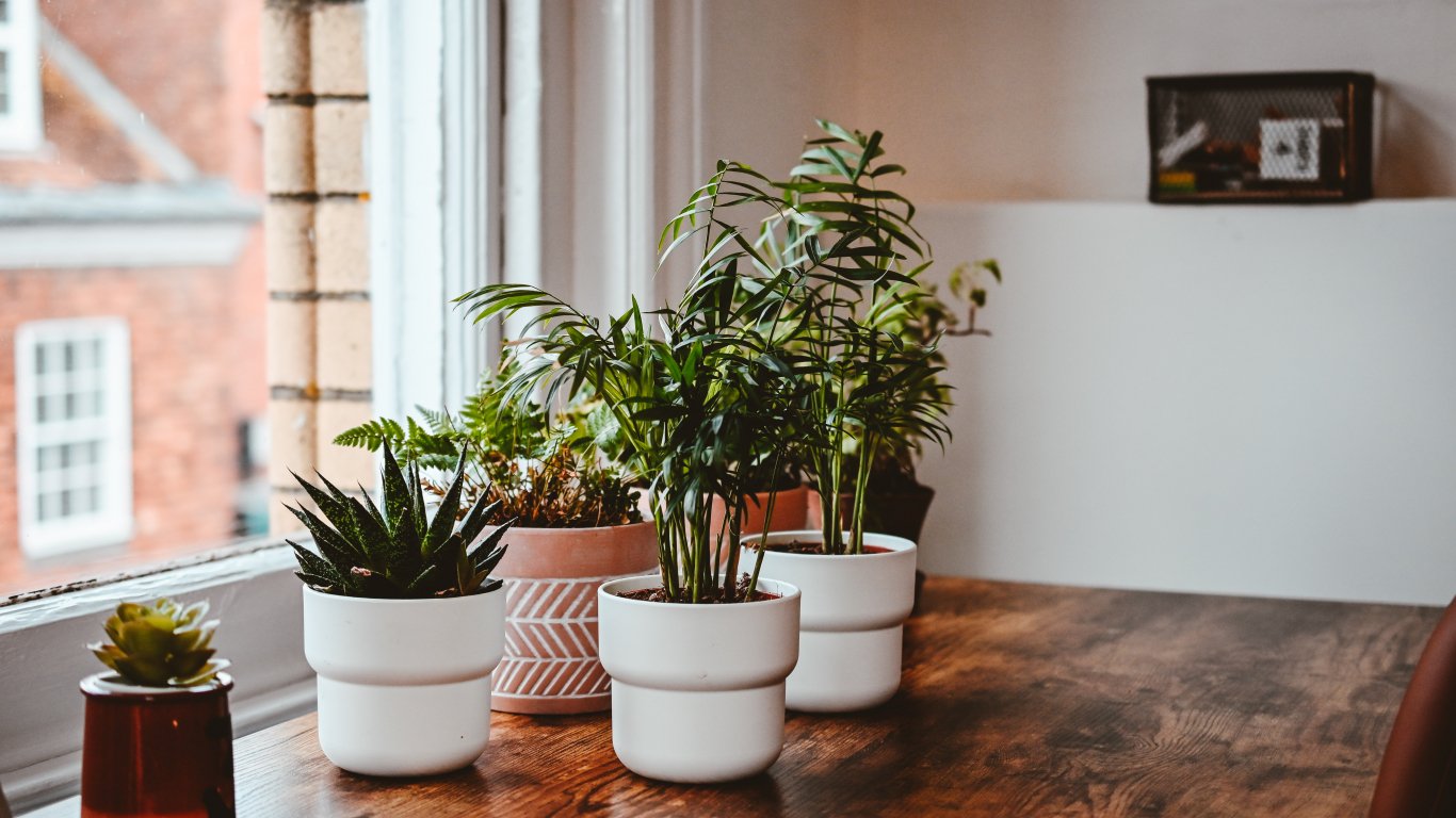 Wallpaper: house, potted flowers - 1366x768