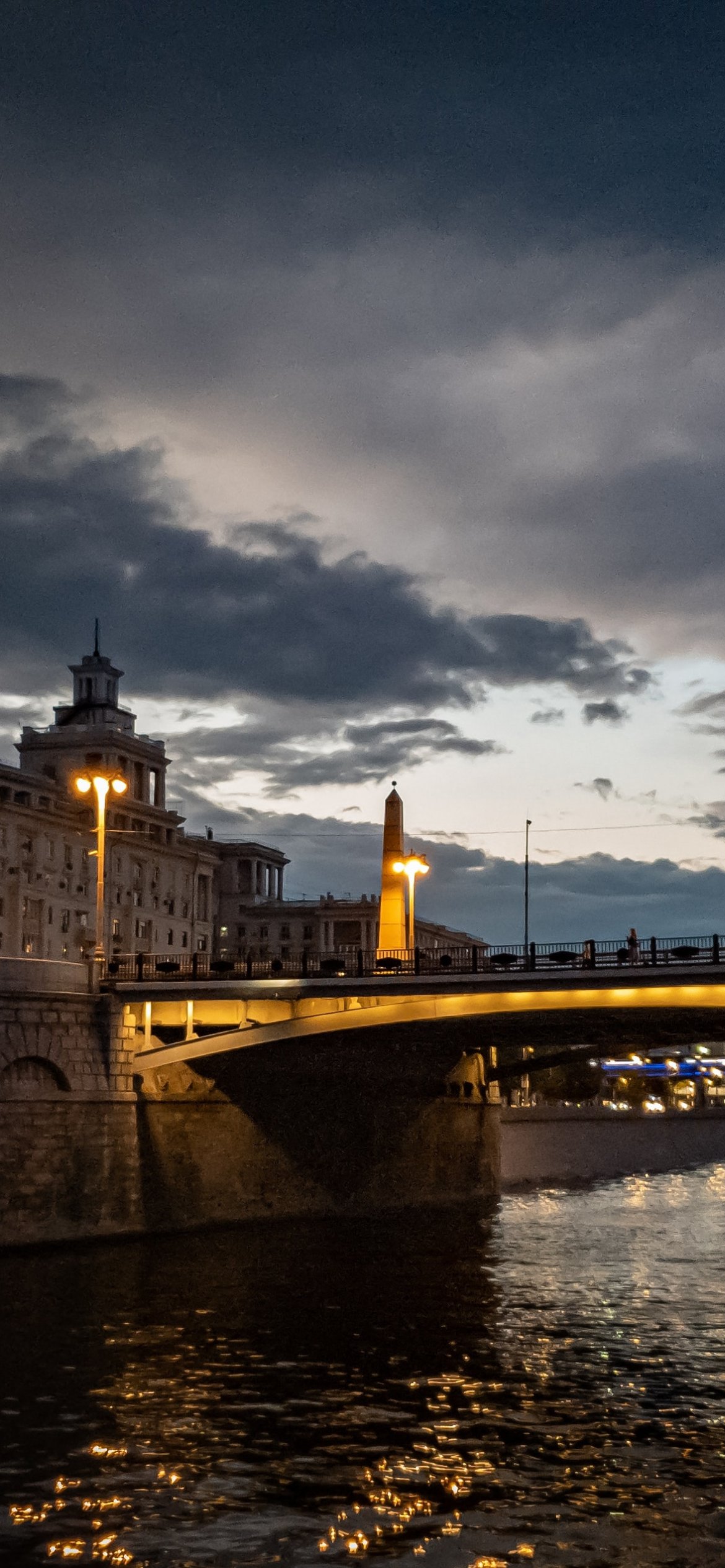 Wallpaper: night city, bridge over the river - 1170x2532