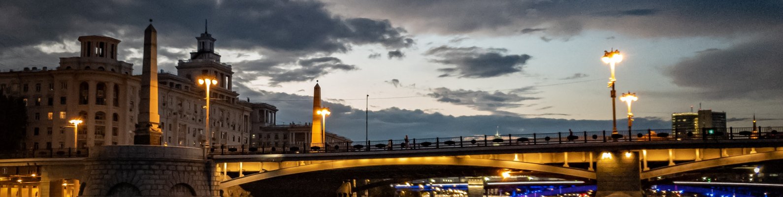 Wallpaper: night city, bridge over the river - 1590x400