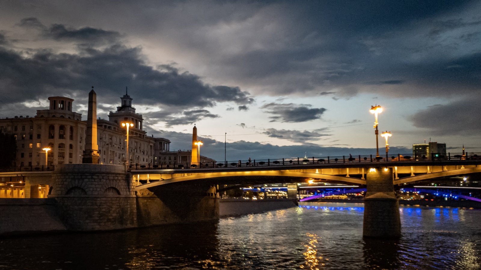 Wallpaper: night city, bridge over the river - 1600x900