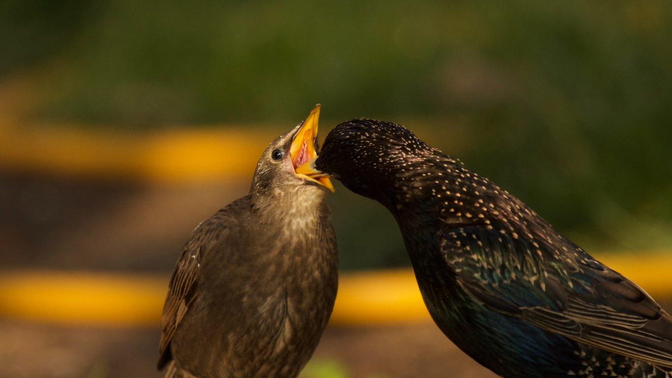 Wallpaper: birds, feeding - 1366x768