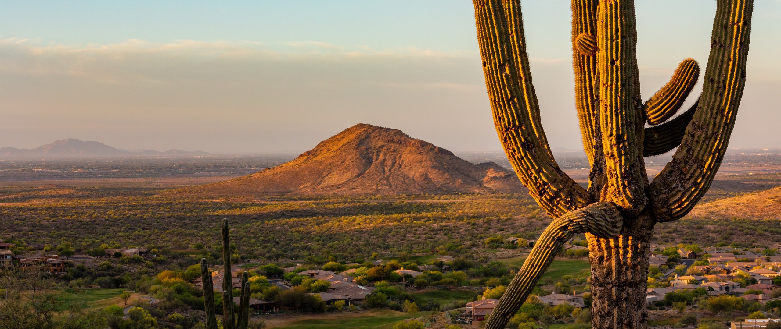 Wallpaper: big cactus, mountain - 2560x1080