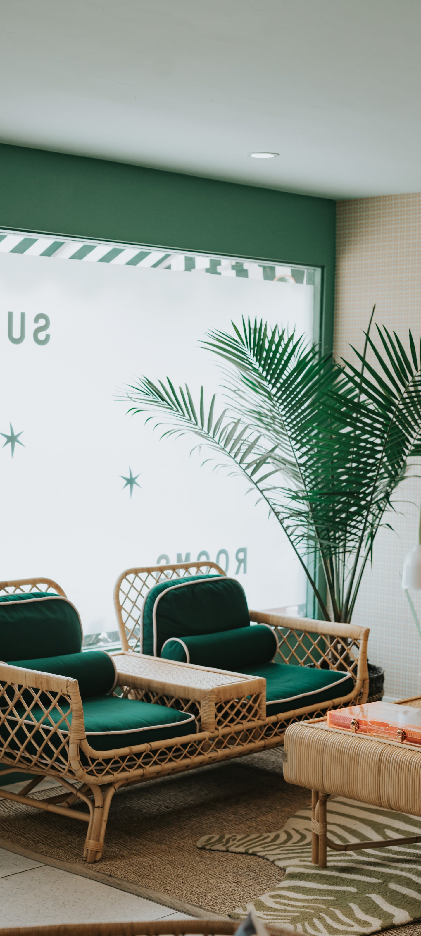 Wallpaper: interior, green accents - 1440x3200