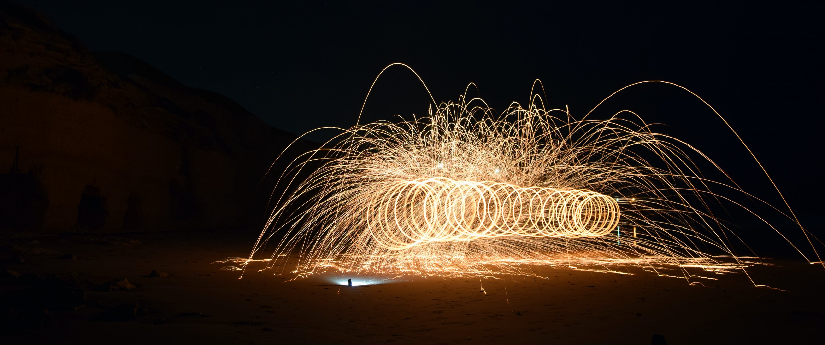 Wallpaper: sparks, fireworks - 3440x1440