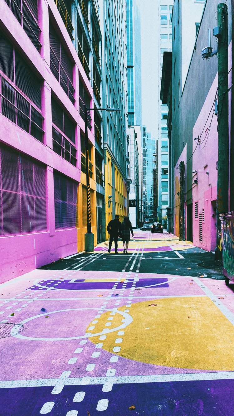 Wallpaper: city street, colorful walls - 750x1334