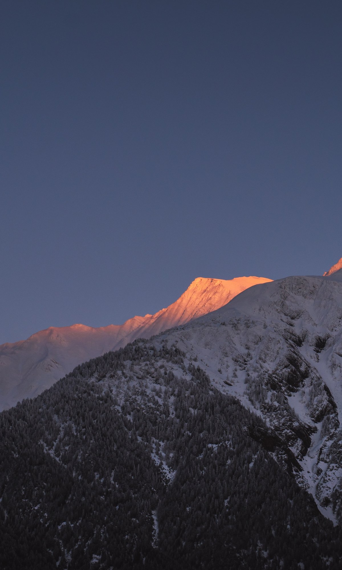 mountain, peak, forest, snow, trees, calm, pacification Wallpaper 1200x2000