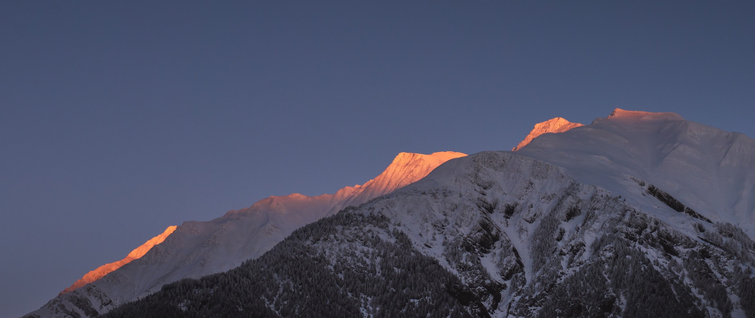 mountain, slope, morning, snow Wallpaper 2560x1080