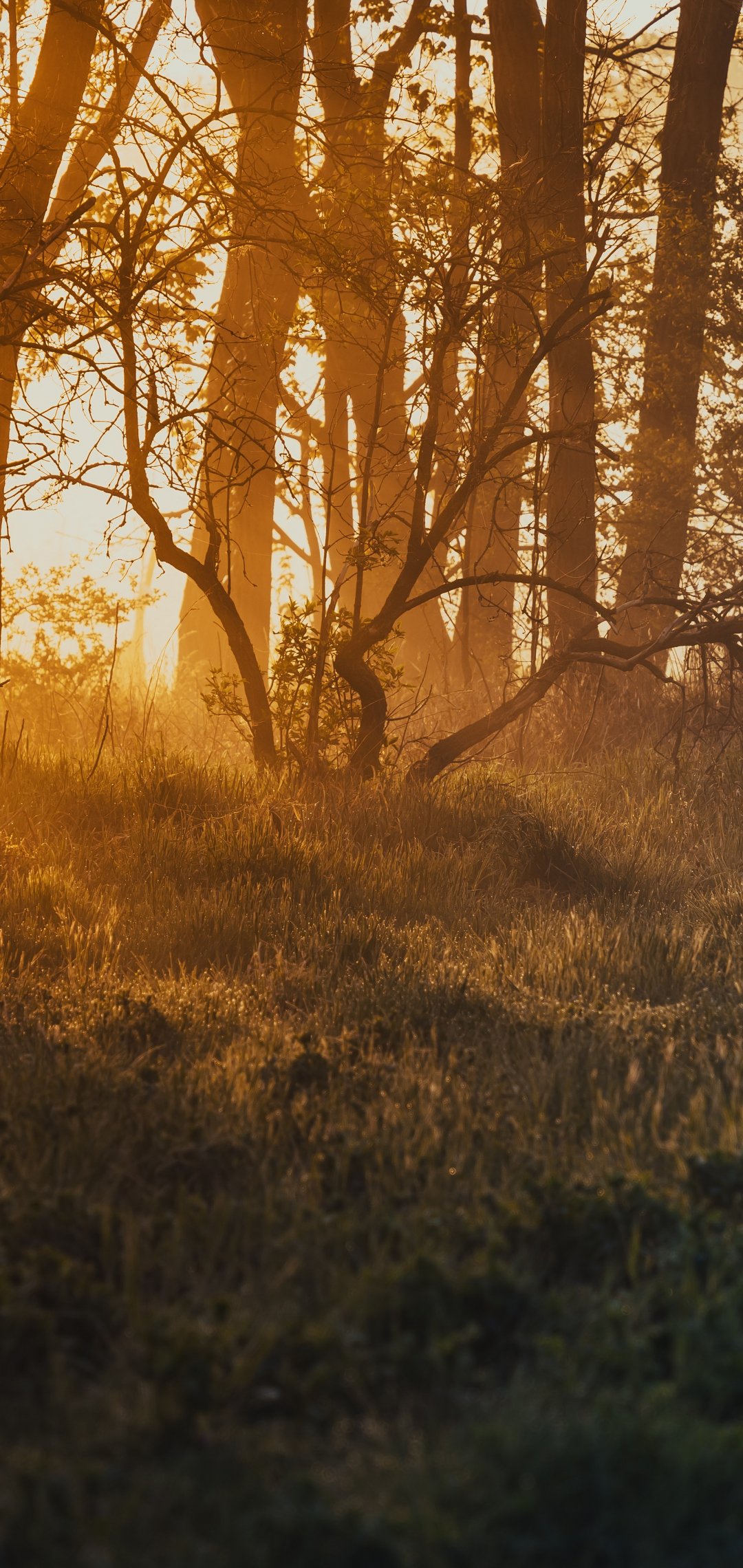Wallpaper: dawn, in the woods - 1080x2280