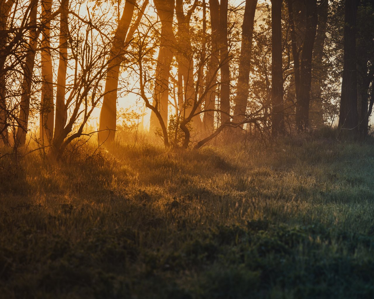 Wallpaper: dawn, in the woods - 1280x1024