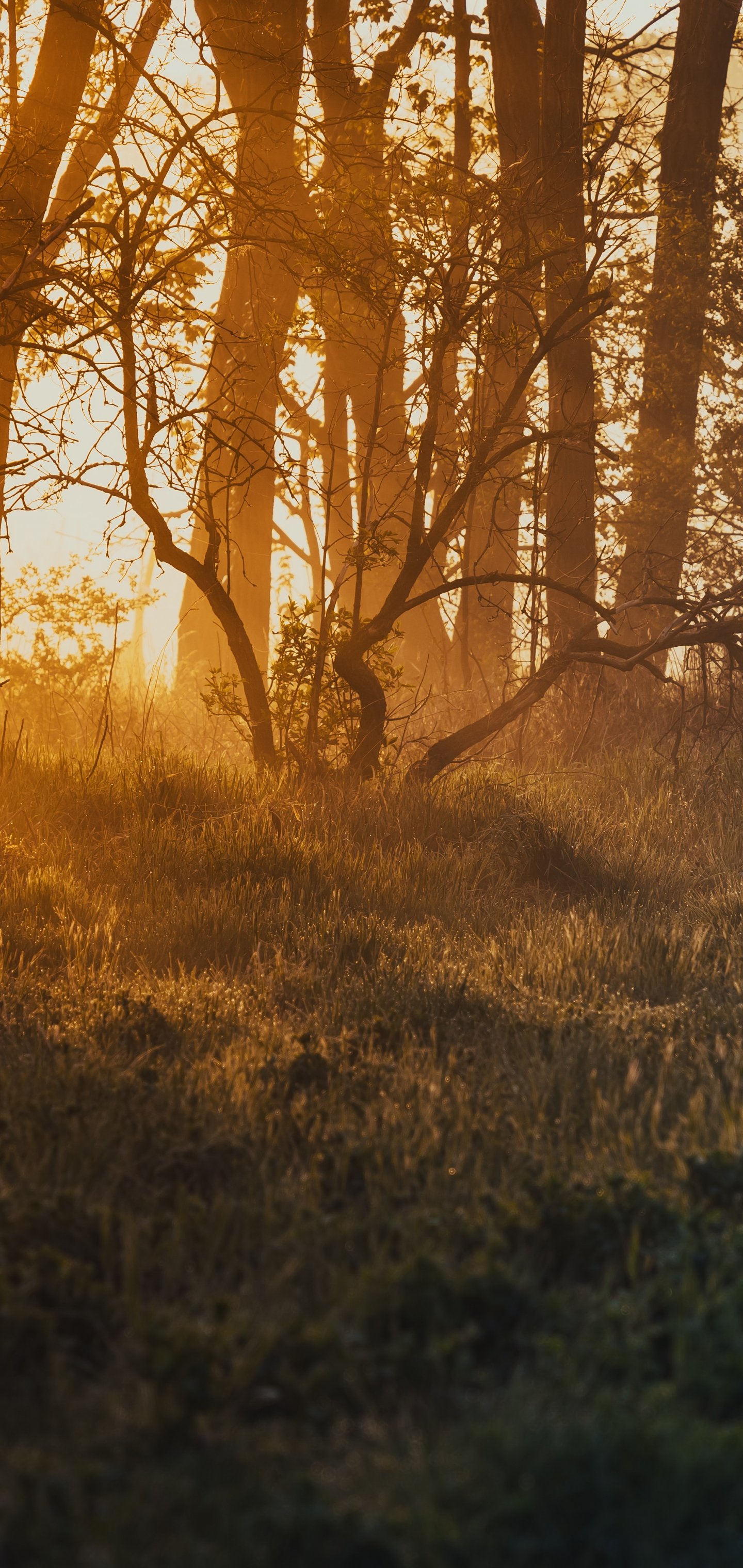 Wallpaper: dawn, in the woods - 1440x3040