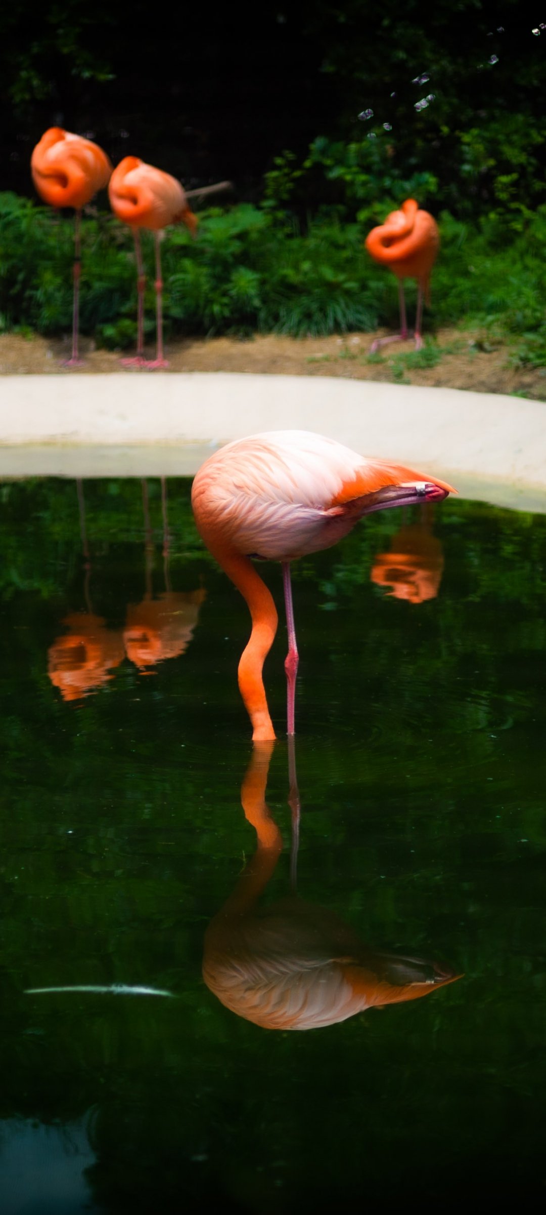 Wallpaper: pond, flamingo - 1080x2400
