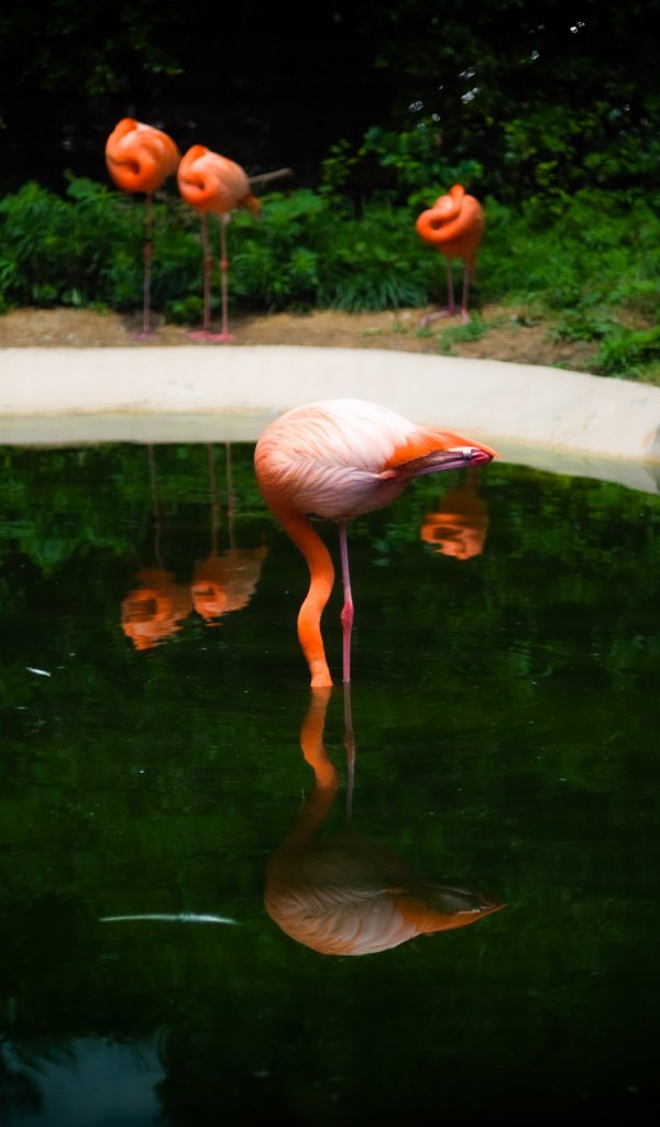 Wallpaper: pond, flamingo - 600x1024
