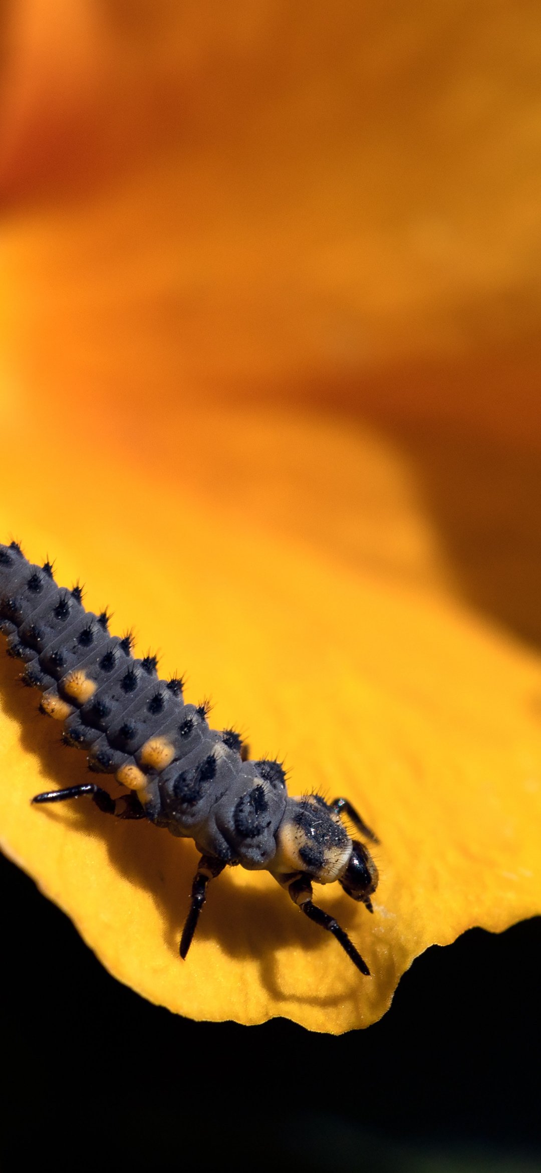 Wallpaper: big caterpillar, flower - 1080x2340