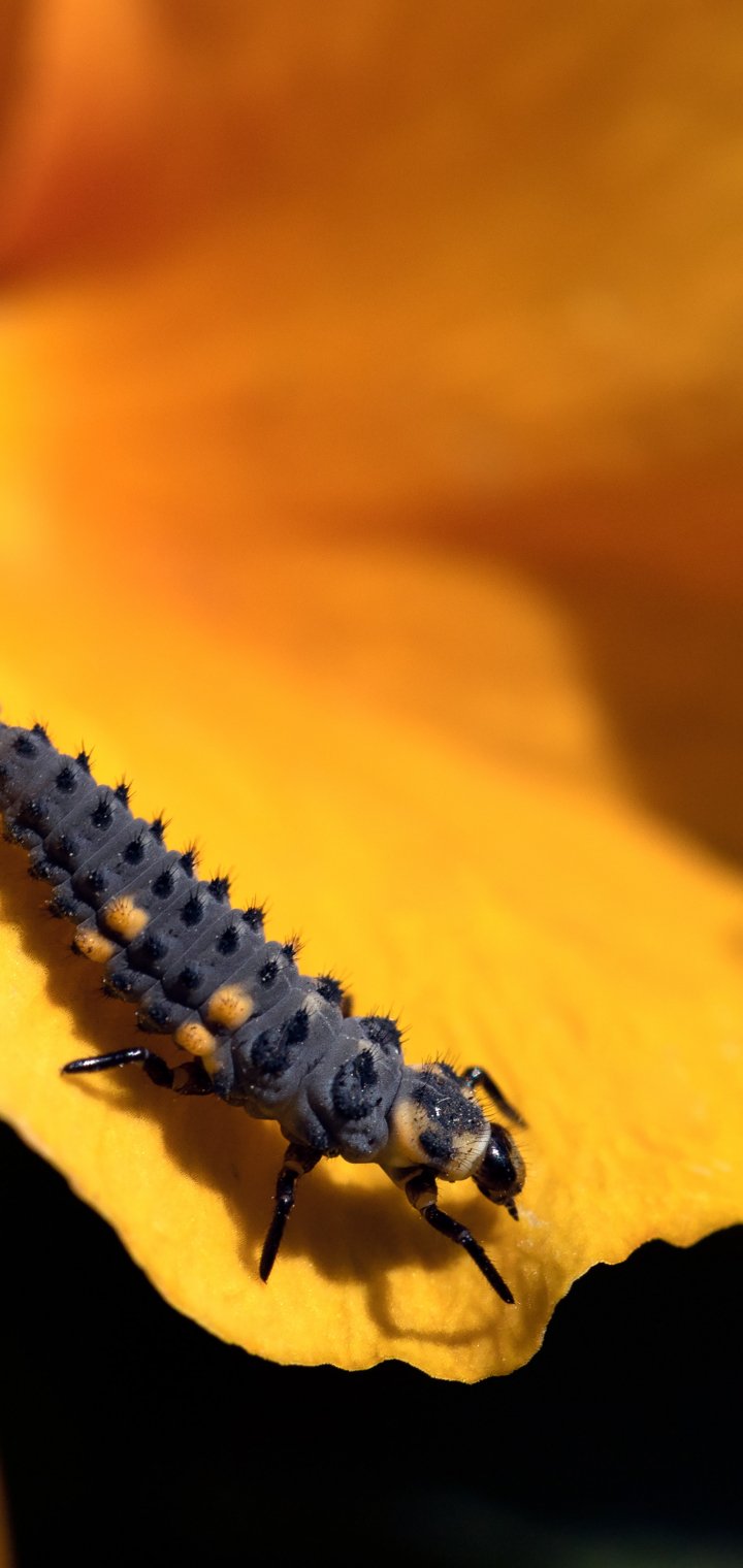 Wallpaper: big caterpillar, flower - 720x1520