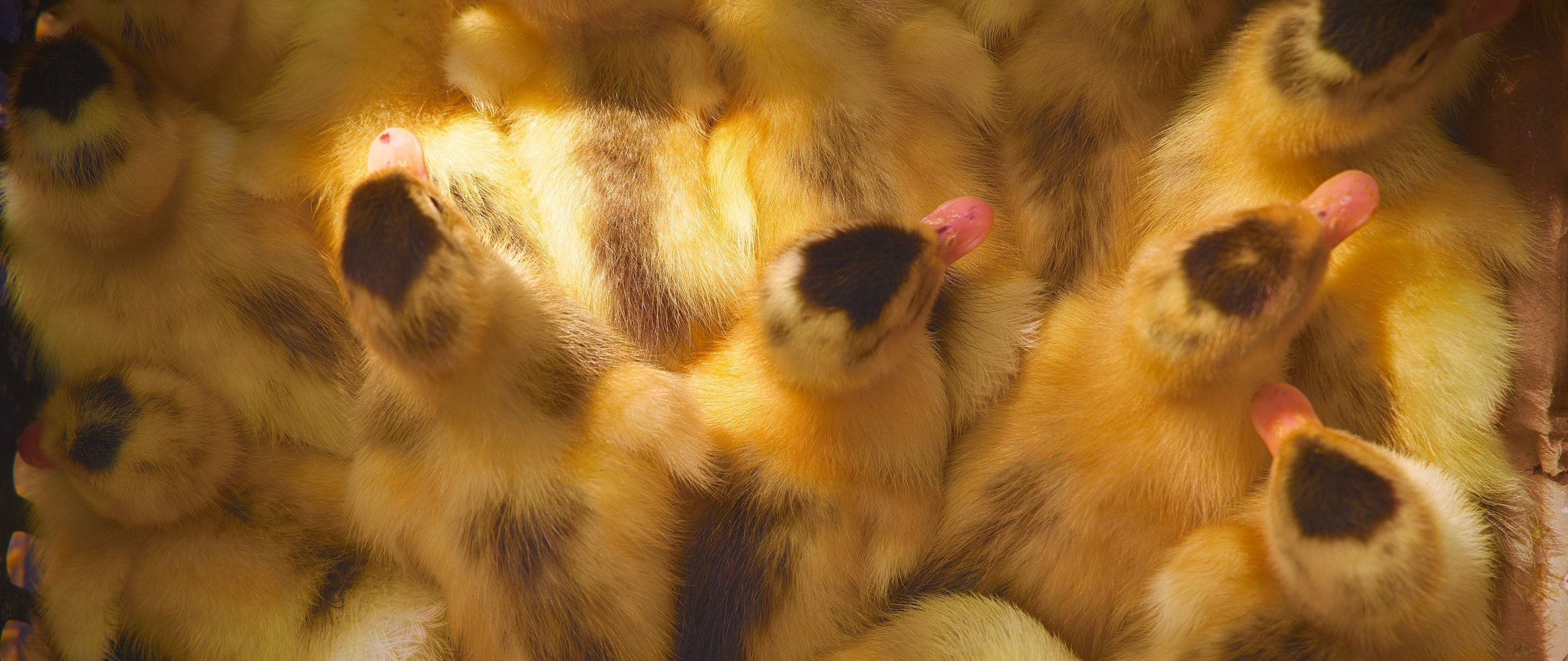 Wallpaper: ducklings, chicks - 2560x1080