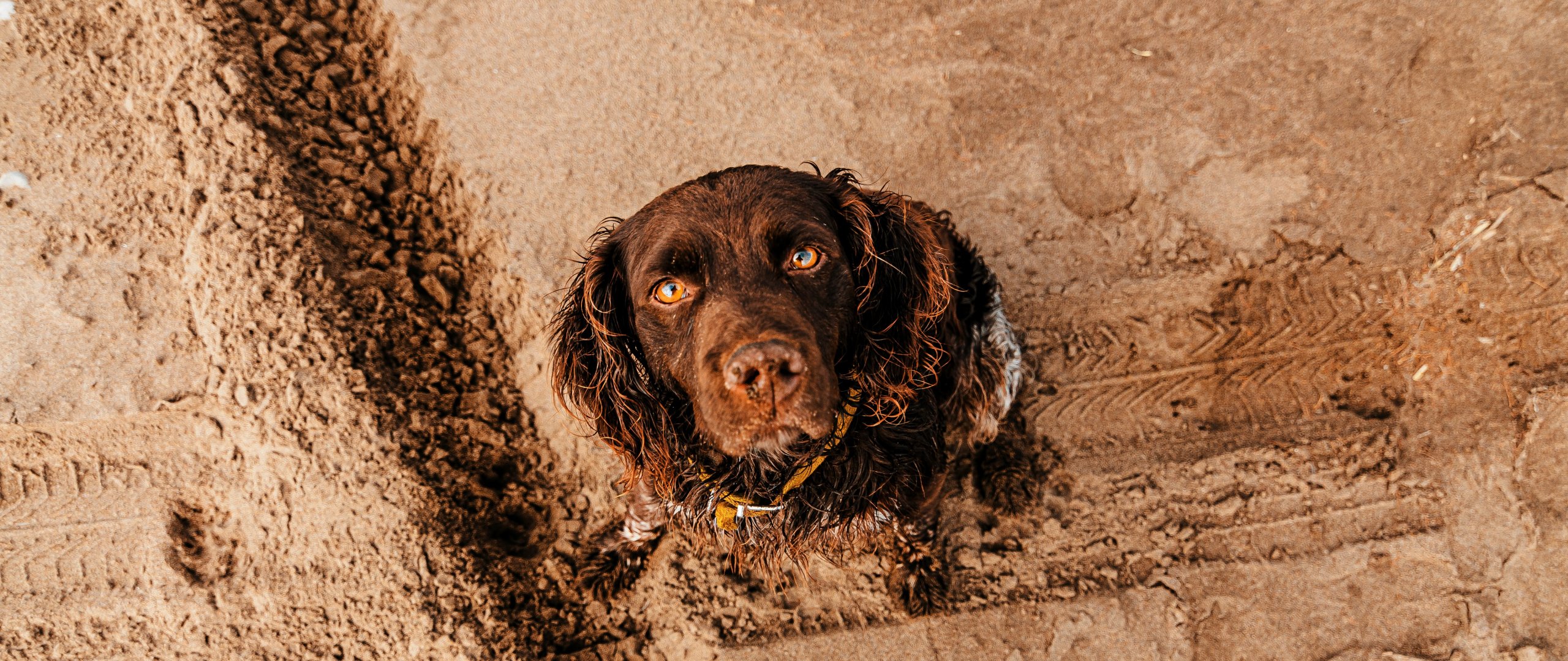 Wallpaper: dog, devoted eyes - 2560x1080