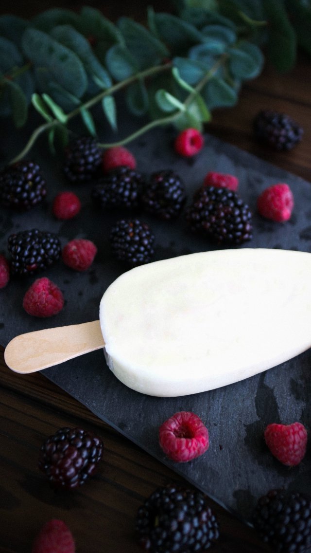 Wallpaper: raspberries, blackberry, ice cream - 640x1136
