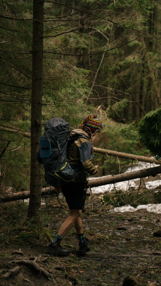 Wallpaper: hiking, in the woods - 640x1136