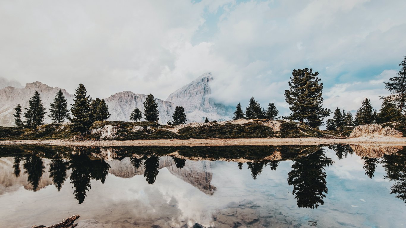 Wallpaper: mountains, reflection in the lake - 1366x768