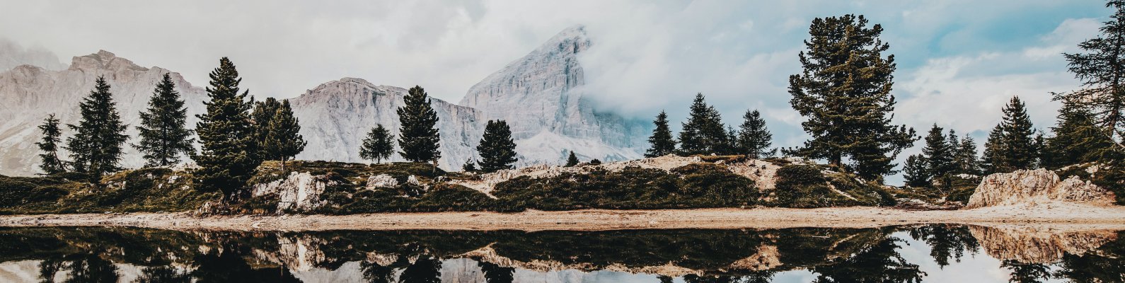 Wallpaper: mountains, reflection in the lake - 1590x400
