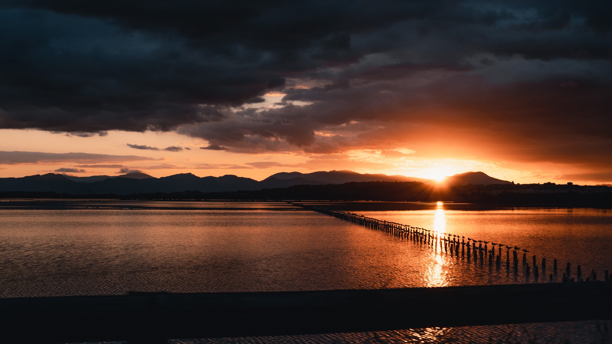 Wallpaper: sunset, sea, pier - 2560x1440