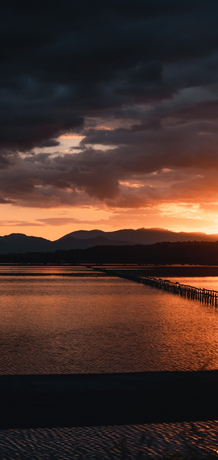 Wallpaper: sunset, sea, pier - 720x1520