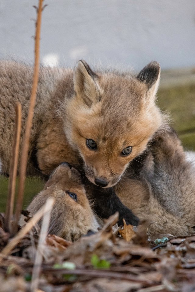 Wallpaper: little foxes, wild animals - 640x960
