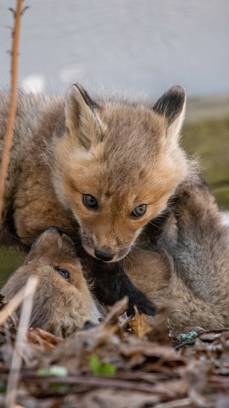 Wallpaper: little foxes, wild animals - 750x1334