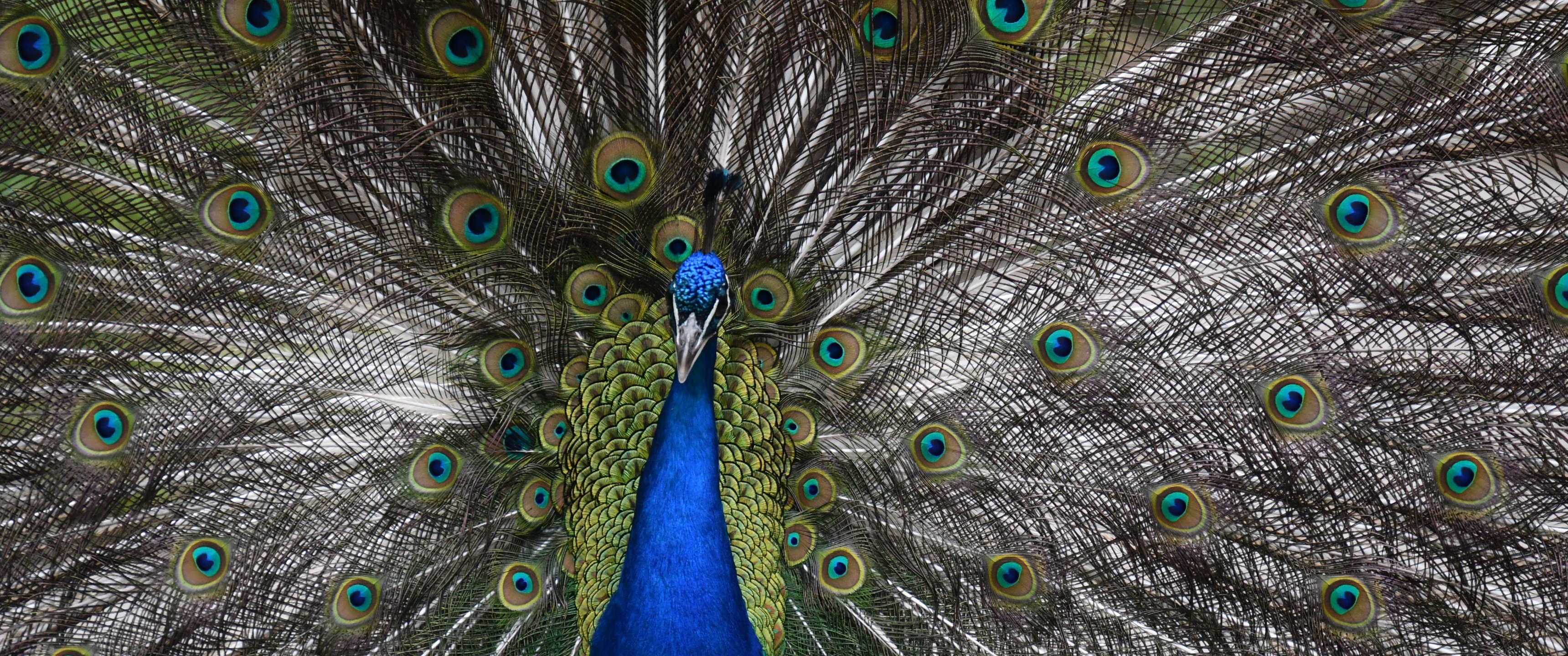 Wallpaper: zoo, male peacock - 3440x1440