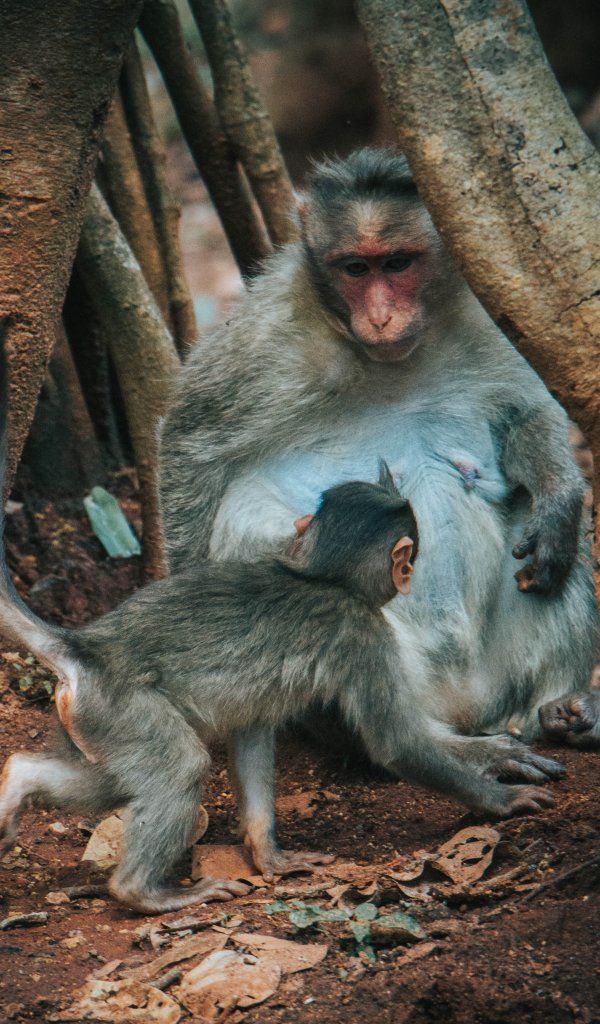 Wallpaper: monkey, mom and baby - 600x1024