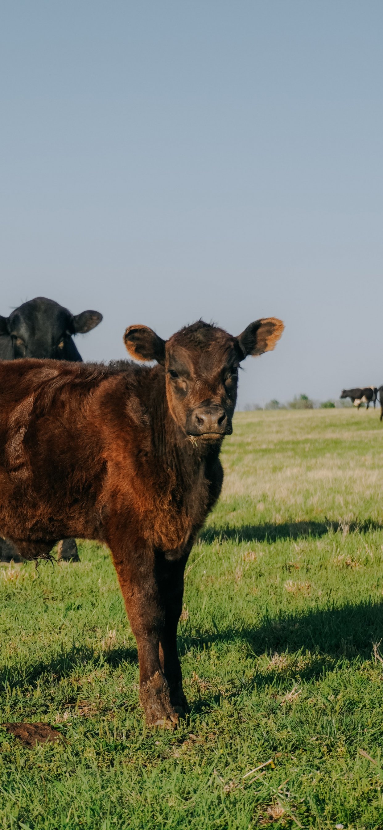 Wallpaper: calves, in the pasture - 1242x2688