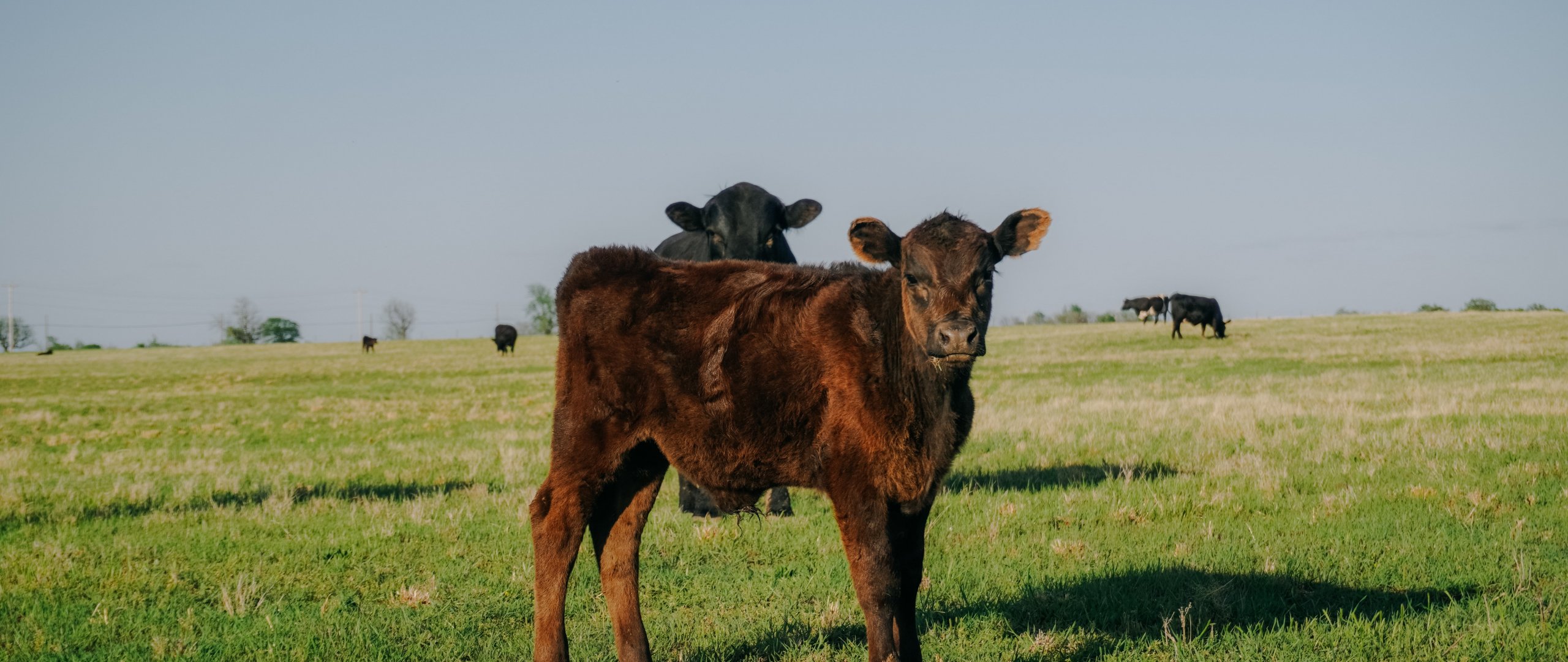 Wallpaper: calves, in the pasture - 2560x1080